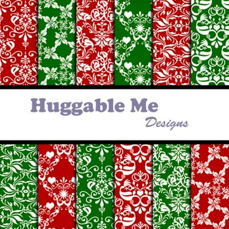 Christmas Green Red Damask Scrapbook Paper Digital Files On Cd